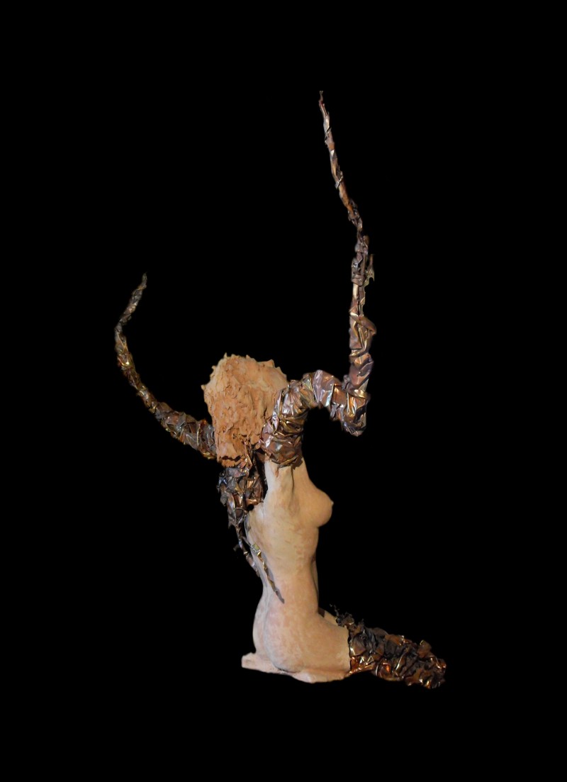 “L’involucro, la terracotta che si lascia modellare, accarezzare, percuotere, quasi violentare, che assorbe la luce … e il rame, duro, tagliente, conduttore di energia … quella parte interiore di noi che vogliamo dominare”
